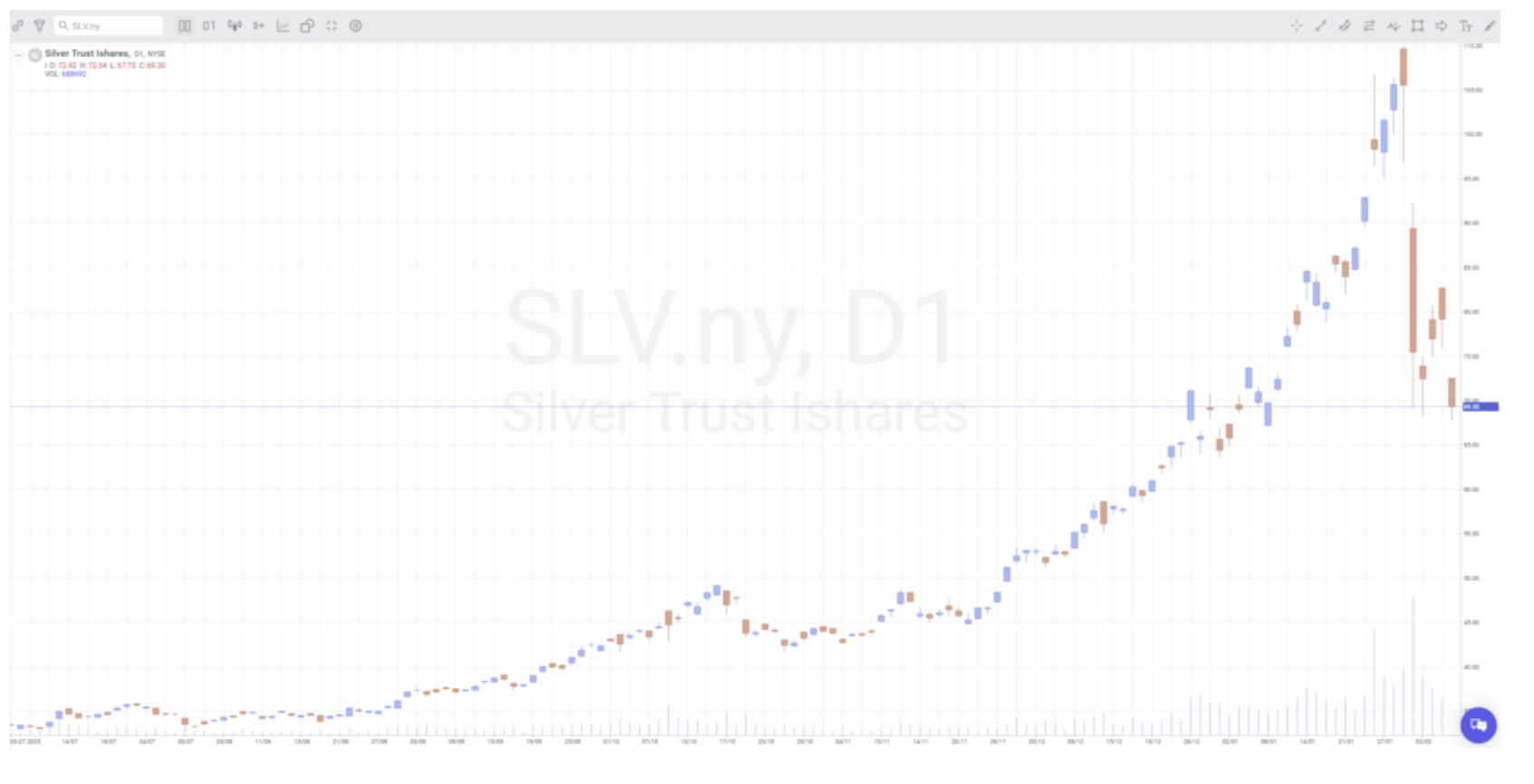 Stalo sa tak minulý piatok, 30. januára, keď bolo skoro ráno oznámené, že Donald Trump nominoval Kevina Warsha na post šéfa Fedu. Táto správa okamžite zmazala „chaosovú prémiu“, pretože Warsh je považovaný za zástancu tvrdých mien a nezávislosti centrálnych bánk, čo okamžite zvrátilo prevládajúci trhový naratív. Za niekoľko hodín cena zlata klesla o 10 %, zatiaľ čo striebro zaznamenalo totálny kolaps na 75 USD, pričom fond SLV v jednom momente stratil 35 %. Boli sme svedkami druhého najväčšieho poklesu striebra za posledných 60 rokov, hneď po tom, ktorý sa odohral týždeň skôr.
