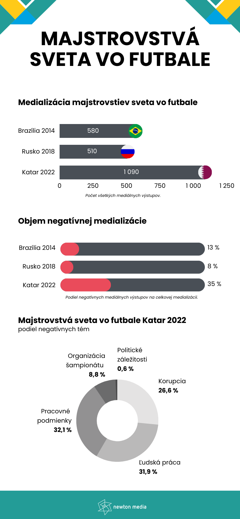 NEWTON Media, najväčšieho stredoeurópskeho poskytovateľa služieb mediálneho monitoringu a analýz, porovnali MS v Katare z hľadiska negatívnych mediálnych zmienok s predošlými dvoma šampionátmi v Rusku a Brazílii.