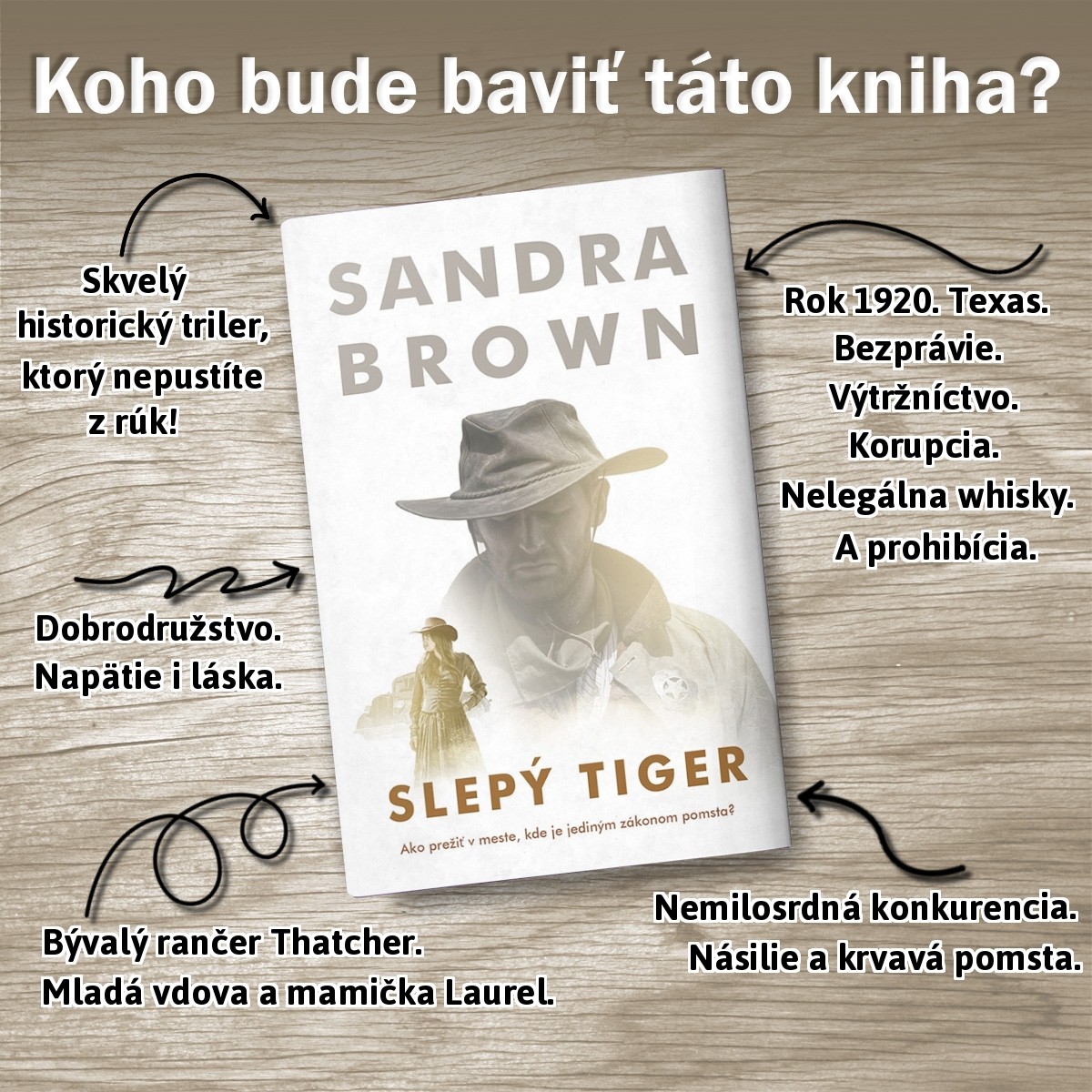 Bratislava 24. októbra (OTS) - „Verím, že si túto knihu užijete rovnako ako ja. Keďže za všetkým, čo sa v príbehu deje je nelegálne pálenie whisky, tak si dajte aj vy pohárik whisky a začítajte sa,“ odkazuje známa herečka Zdena Studenková, ktorá si túto novinku s chuťou prečítala. Slepý tiger je vynikajúci historický triler, v ktorom sa brilantne spája napätie s romantikou. A právom patrí k tomu najlepšiemu, čo Sandra Brown napísala.
