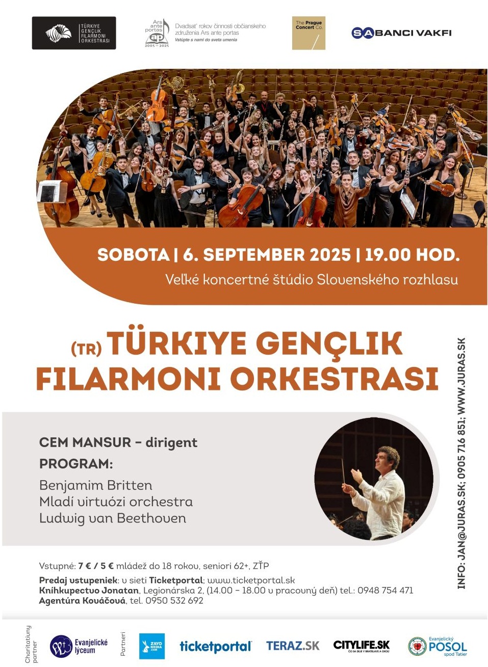 Tureckej národnej mládežníckej filharmónie (TÜRKIYE GENÇLIK FILARMONI ORKESTRASI, Turkish National Youth Philharmonic Orchestra) sa vracia 80 skvelých mladých hudobníkov (nasledovníkov členov predošlých orchestrov) vo veku 16 – 22 rokov do nášho hlavného mesta s atraktívnym programom.