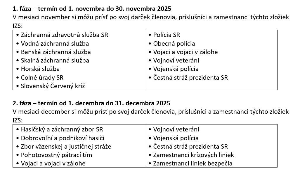 Darček je určený všetkým príslušníkom a zamestnancom zložiek IZS, bezpečnostných zborov a ozbrojených síl. Tí všetci môžu od 1. novembra do 31. decembra 2025 využiť mimoriadnu zľavu 50 % na vybrané pánske obleky. Muži si v tomto termíne v predajniach BANDI zadovážia obleky do zamestnania, na ples, svadbu a rodinné oslavy za polovičnú cenu.